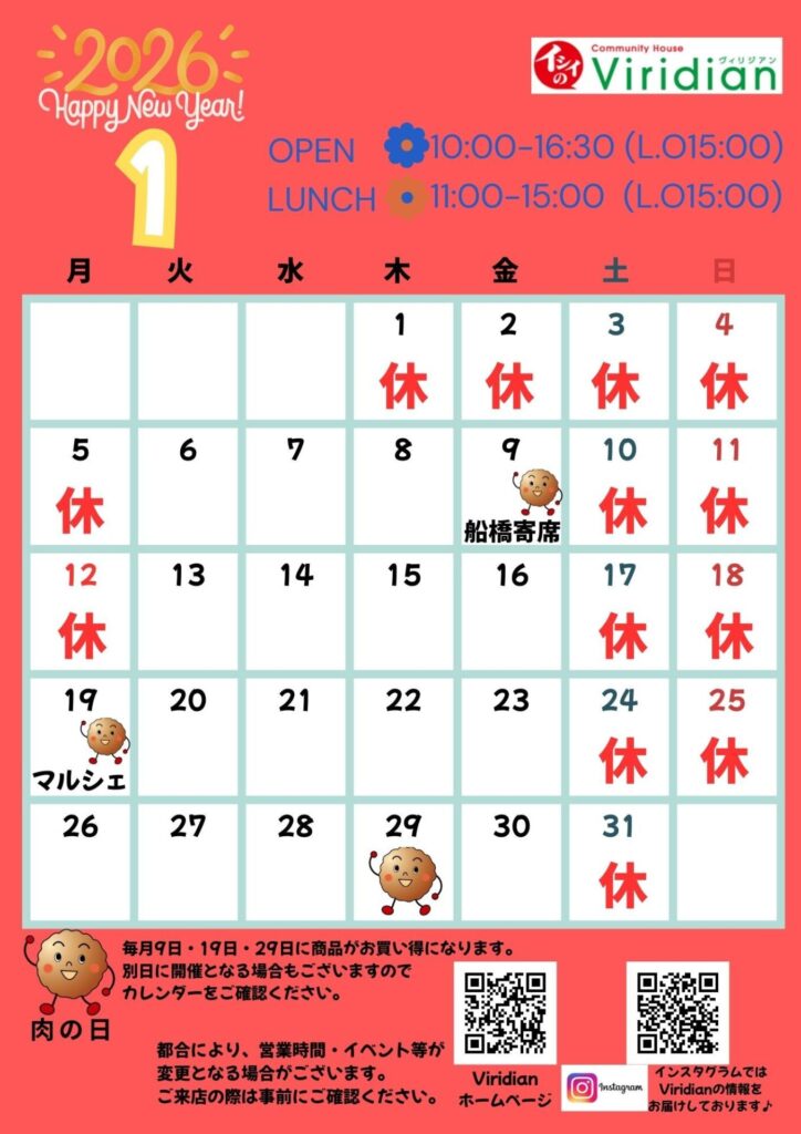2025年12月18日【営業時間のご案内】2026年1月休館日営業時間 SNSでシェアする 𝕏 ポスト share LINE 【営業時間のご案内】2026年1月 2025.12.18 【イベント開催報告】「いつでもミートボー... 2025.12.18 【イベント情報】「いつでもミートボール」... 2025.12.04 【店舗情報】Viridian共同企画レン... 2025.12.04 【店舗情報】店内の冬支度が完了しました(... 2025.12.03 【営業時間のご案内】2025年12月 2025.12.03 【イベント情報】Viridianマルシェ 2025.12.02 【商品情報】江戸雑煮・博多雑煮・京都雑煮... 2025.11.21 【イベント情報】ブラックフライデー初開催... 2025.11.20 【商品情報】フィロコフィアコーヒー・カフ... 2025.11.07