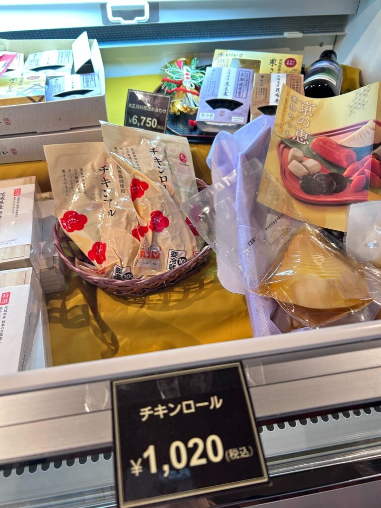 京都の食材を使用した煮物(人参、椎茸、牛蒡、筍、海老芋など)やチキンロールも入荷しました。