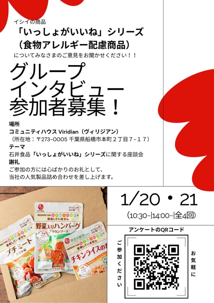 イシイの「いっしょがいいねシリーズ」について、皆様の率直なご意見をお聞かせいただきたくグループインタビュー参加者を募集します😍